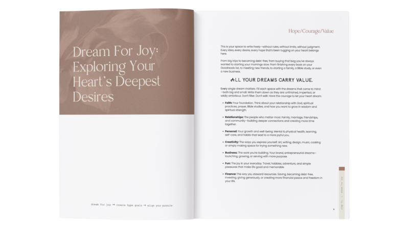 Dream for Joy – Reconnect with what truly matters across seven heart-centered areas of your life: faith, relationships, personal, creativity, business, fun, and finance.
